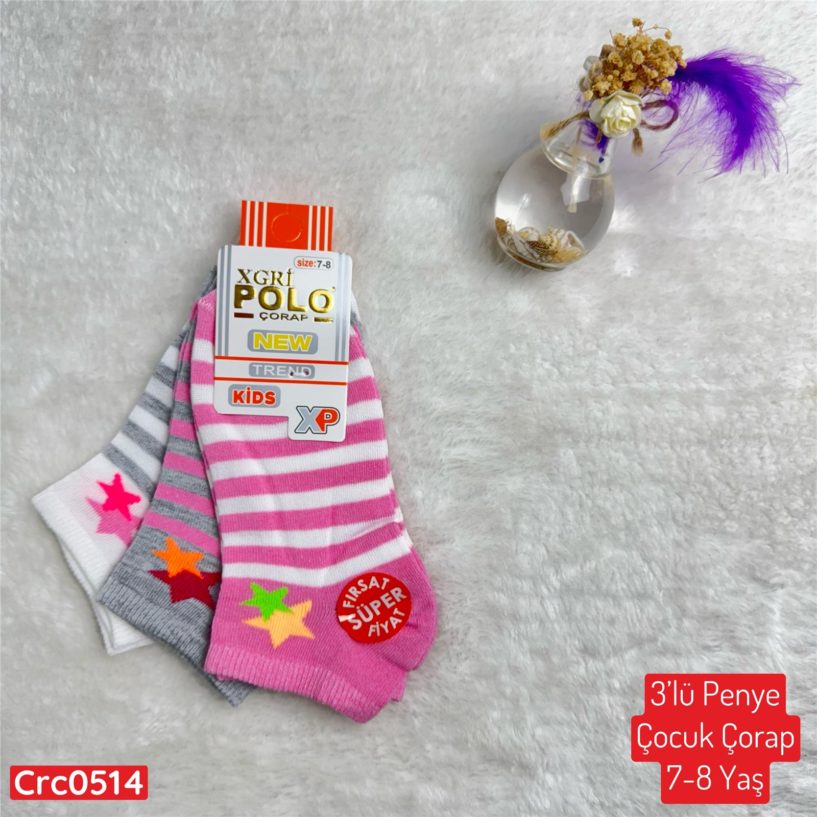 H-167 3lü Penye Çocuk Çorap (7-8 Yaş) (Crc0514)