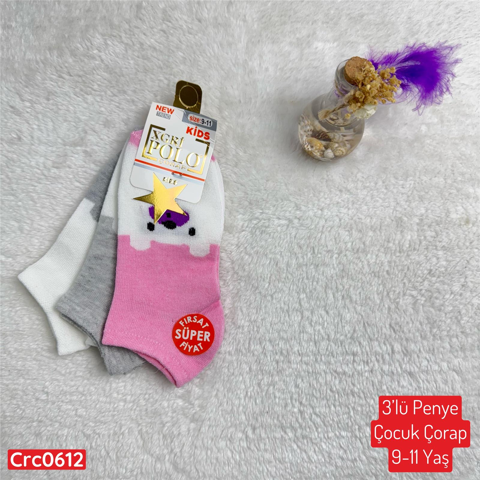 H-177 3lü Penye Çocuk Çorap (9-11 Yaş) (Crc0612)