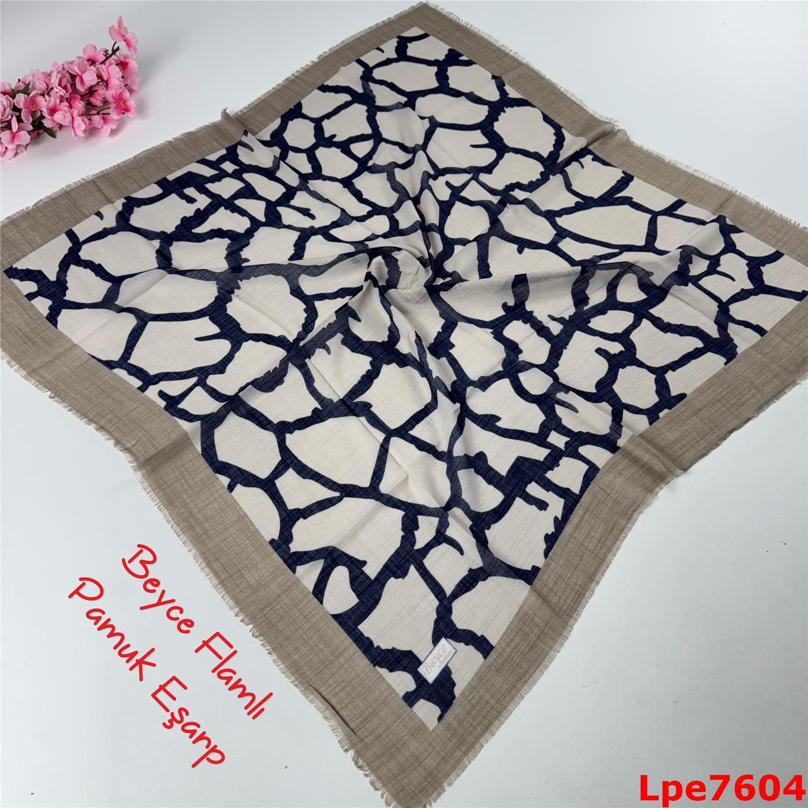 N-010 Beyce Flamlı Pamuk Eşarp (Lpe7604)