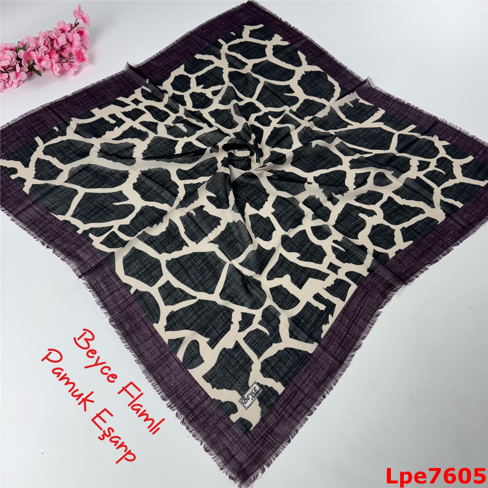 N-011 Beyce Flamlı Pamuk Eşarp (Lpe7605)