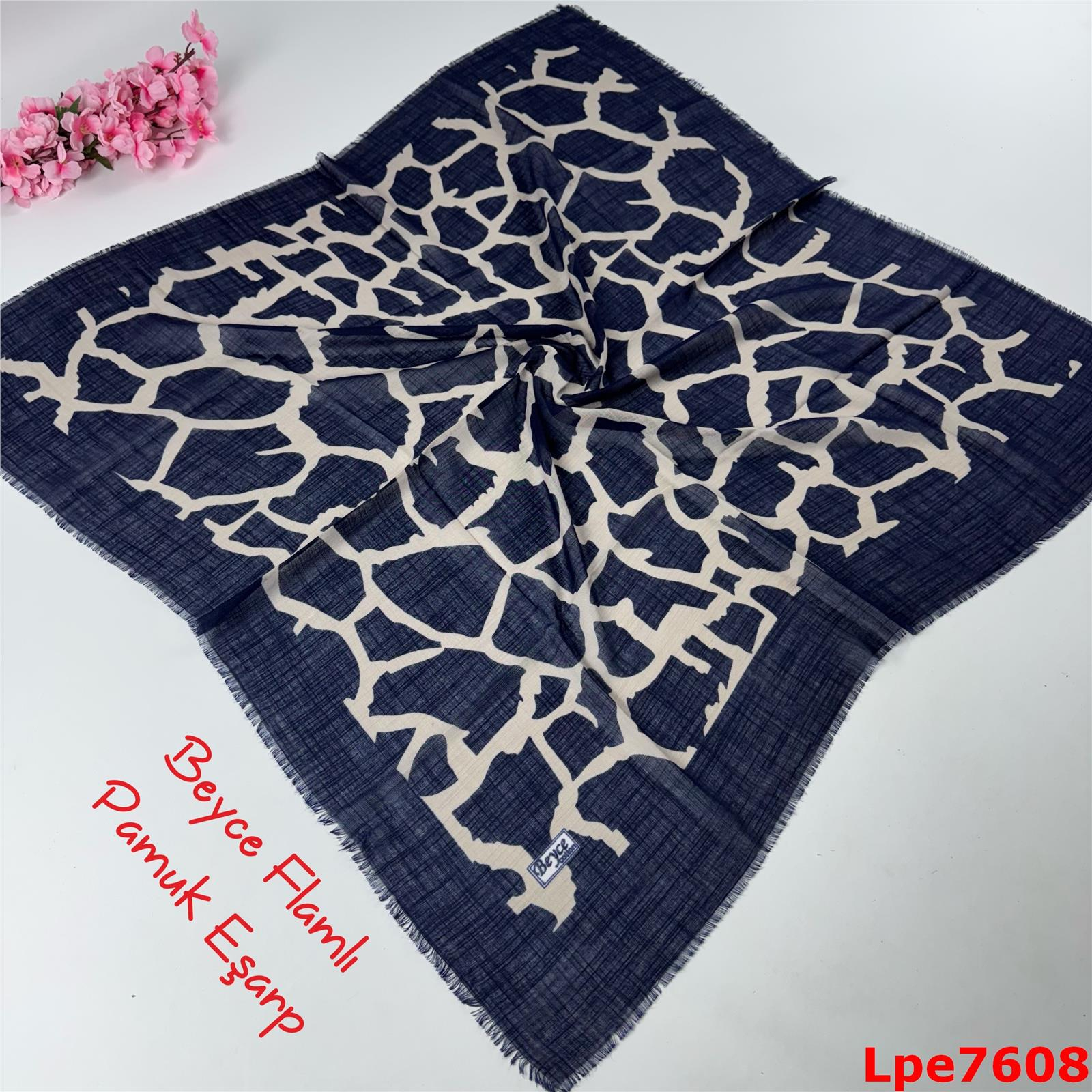 N-015 Beyce Flamlı Pamuk Eşarp (Lpe7608)