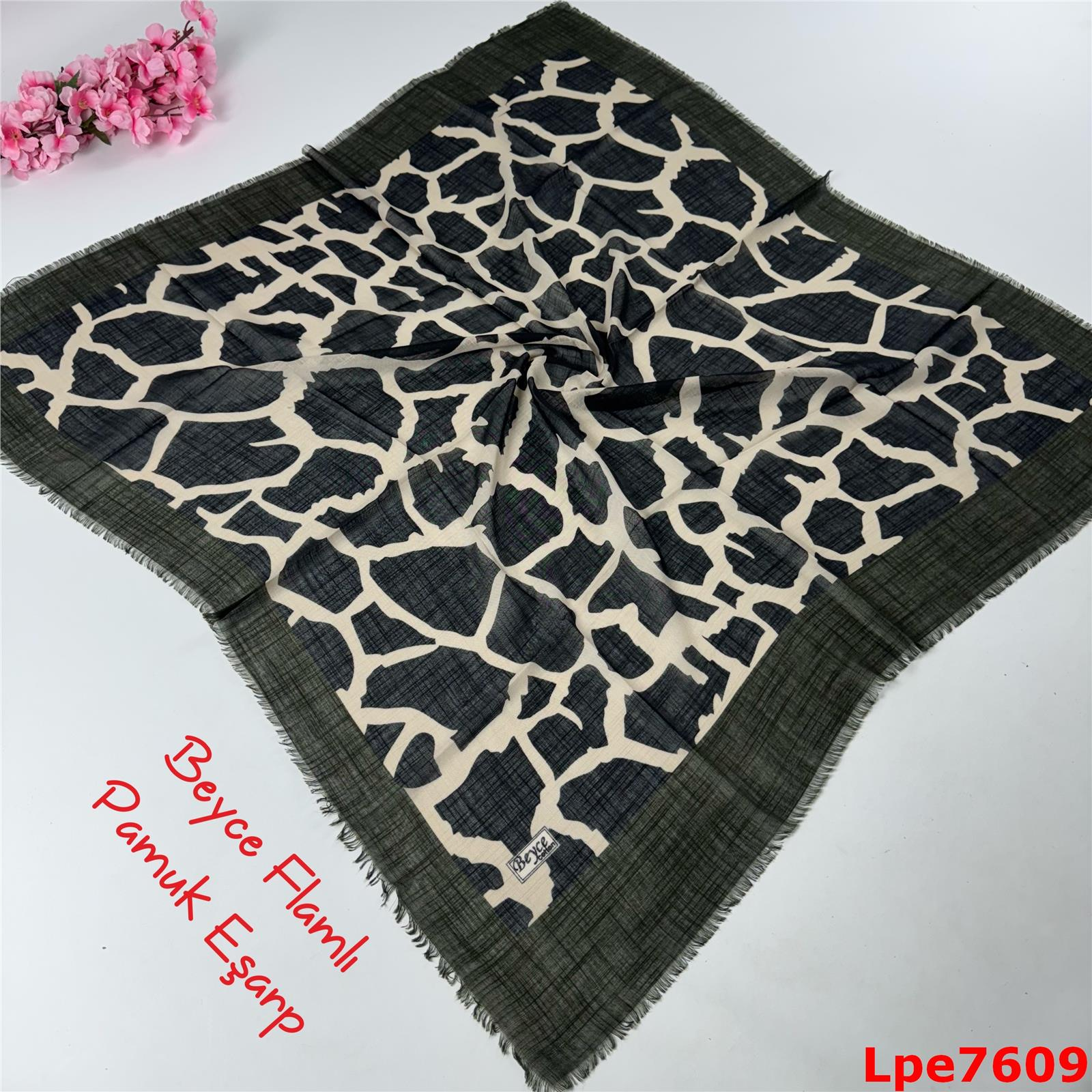 N-017 Beyce Flamlı Pamuk Eşarp (Lpe7609)
