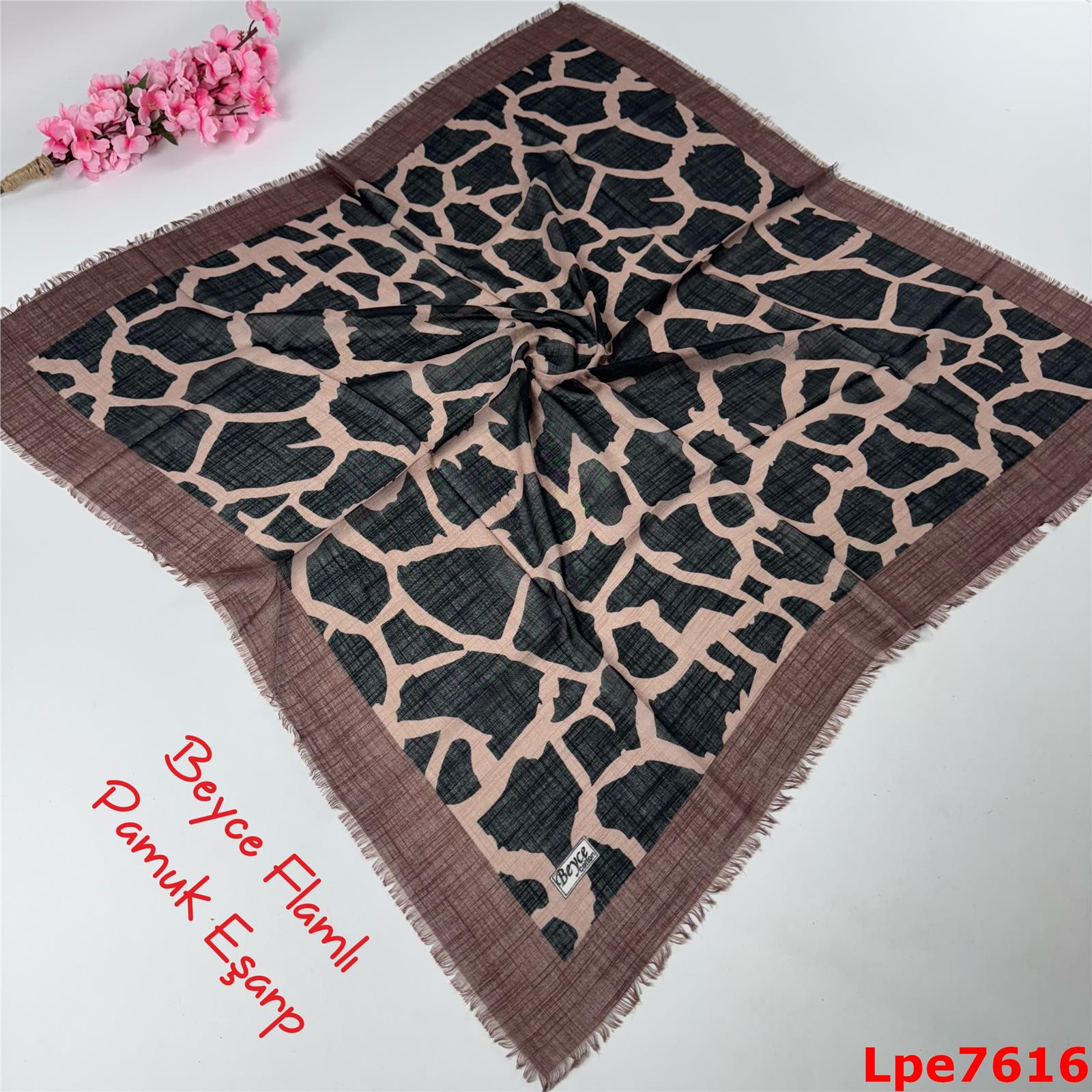 N-034 Beyce Flamlı Pamuk Eşarp (Lpe7616)