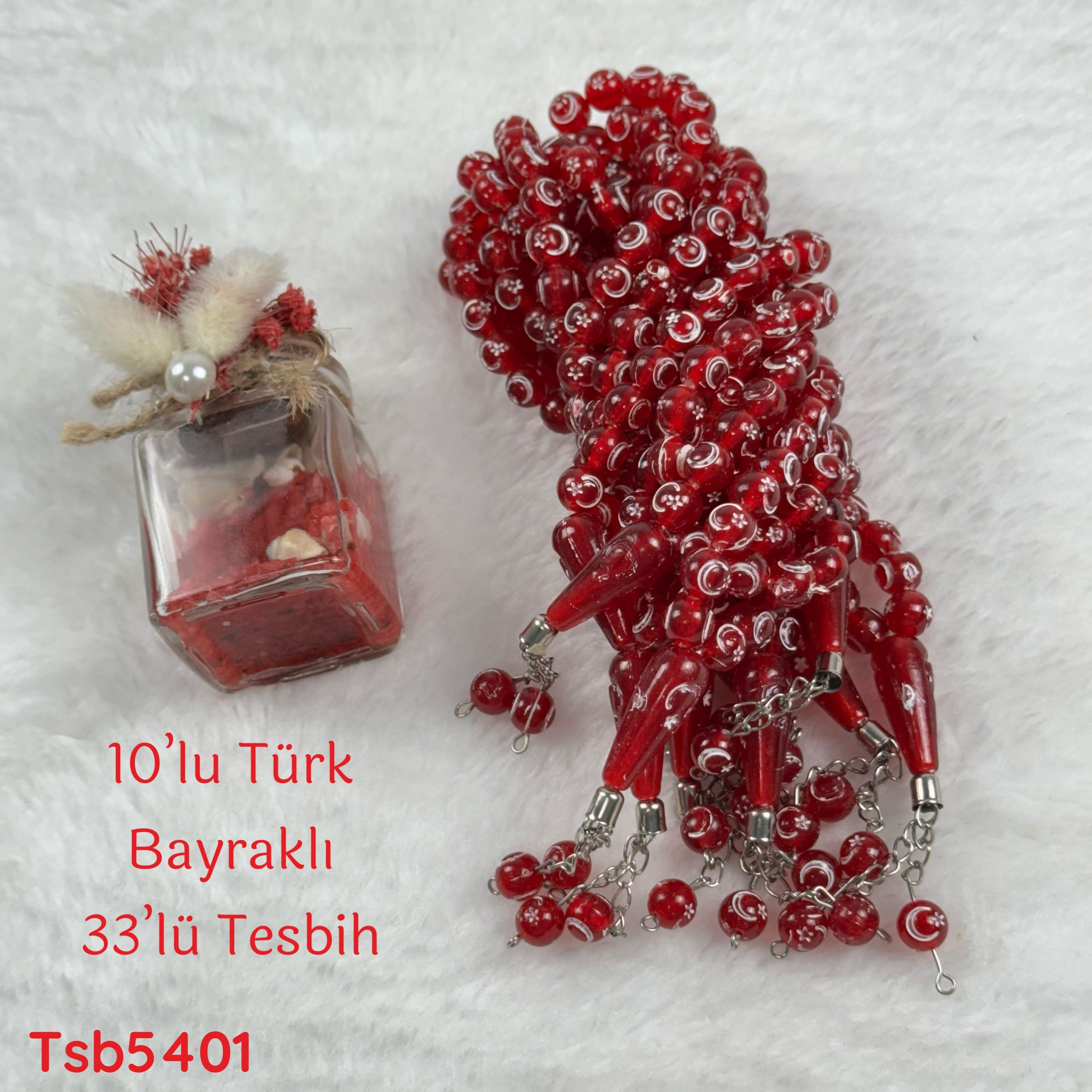ZZ-223 33'lü Türk Bayraklı Tesbih (10 ADET) (Tsb5401)