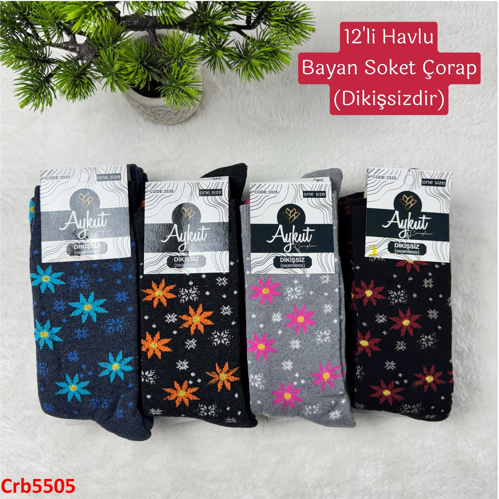 ZV-121 Havlu Bayan Soket Çorap 12 Adet (Crb5505)