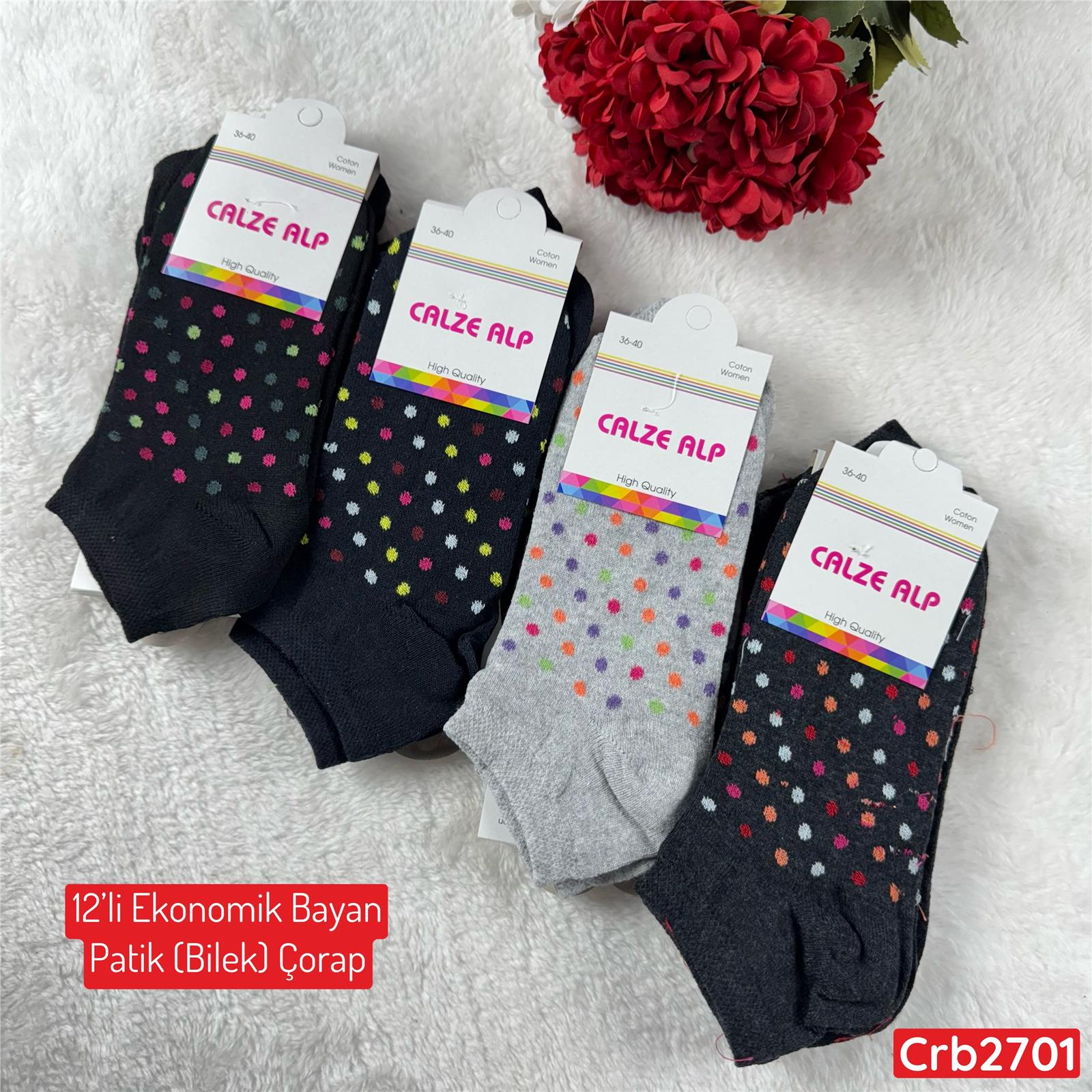 ZV-305 Ekonomik Bayan Patik(Bilek) Çorap 12 ADET (Crb2701)